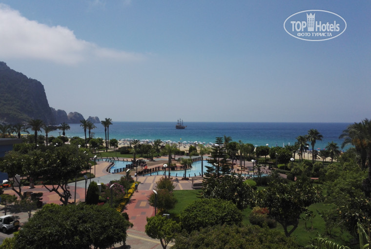 Приехали вечером, поэтому ждать заселения не пришлось, но 3-хместых номеров не было, нас было 2семьи по три человека и нам сказали доплатить за семейные номера 2-комнатные, мы отказались, но нас все равно заселили в 2-комнатные, видно, на самом деле других номеров не было. Друзьям с номером повезло, а у нас не работал слив в ванне и входная дверь открывалась с 10 раза, на утро переехали в 3-хместный, а те так и остались в том жить. Номера хорошие, убирались нормально, вот тока шампуни и гели положили новые через неделю, даже чаевые не помогали, видно с уборщицей не повезло, хотя друзьям их ложили каждый день. Воду для питья оставляла каждый день. Не понимаю, как людям там питания не хватало, нам всего хватало и мяса тоже!!! Очередь там только к шеф-поварам, когда на улице гриль выносят, но и без этого куча еды, я почти никогда к ним не стояла. Но вот в последний день, мне настроение один испортил, решила подойти за мясом к шеф-повару, очереди уже не было, висел целый баран или кто там, мне на пустую тарелку положил щипотку мяса (прям крохотную), прям издеваясь или это так привлечь внимания хотел, гарнир даже не положил, я со злости выбросила этот мизерный кусочек назад ему, поблагодарив его, настроение было испорчено, потом как оказалось, муж рассказывал, что он всем мало в тот вечер ложил и все упрашивали его больше положить. Зачем тогда вообще это выносить, если такая жесткая экономия? Но этот инцидент не портит общего мнения о еде. Очень много десертов, таких вкусных, арбузы и дыни вдоволь, а вот сливы и персики кислые пока были. По утрам для детей была жидкая манная каша, иногда рисовая еще, молоко, йогурты, хлопья, ну и все остальное с яйцами и сосисками связанное. Пили тока пиво, а вот вино противное, как белое, так и красное. Хорошие улыбчивые официанты. Кому интересны дискотеки, то возят в клуб бесплатно по ночам. Расположение отличное! Море красивое и теплое, около 28 градусов, пляж хороший, но вход резкий, через 5-6 шагов становится для детей глубоко, мой (4года) в нарукавниках спокойно плавал. Отдых понравился, раньше скептически к Турции относились, выбирали Европу, думаю еще раз в Аланию приедем, посмотреть не смогли достопримечательности, так как сильно жарко и душно с маленькими детьми. Для себя решили надо ехать в сентябре, когда вода теплая и не жарко. Кстати, возле отеля красивый парк с фонтанами и детскими площадками, тренажерами, тенисными кортами, воллейбольными площадками и т.д. на любой вкус).