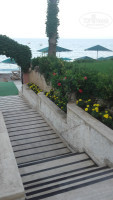 Отдыхали семьей с маленьким ребенком в начале июня в период с 06.06.по 17.06.Прибыли в отель поздно в 23.30,очень долго получали багаж,дорога заняла час с копейками,под непринужденную беседу гида)Отдали паспорта,тут же одели браслеты и проводили в номер.Номер оказался двухместным с дополнительной кроватью для ребенка(раскладная),хотя нас было трое взрослых и ребенок 2.5 года.Очень устали и идти разбираться с номером просто не было сил,поэтому мы оставили вещи и пошли покушать.Придя в ресторан нас встретили с улыбкой,усадили за стол и принесли ланч(три вида салата,сыр,хлеб,сок),все вкусно.Пока мы кушали подошла девушка с ресепшена извинилась за неудобства что произошли при размещении и сказали переселят как закончим.Сытые и довольные мы без всяких разборок и препятствий переехали в соседний семейный номер,то есть по факту нас переселили без каких либо задержек и проволочек и даже без наших жалоб,поэтому за размещение и отзывчивость персонала твёрдая пятерка!Номер большой почти как две комнаты только без перегородок,ванны маленькие,но все комфортно и чистенько.сам отель старый и это видно по году постройки,но везде сделан ремонт,чувствуется что здесь стараются и любят своих туристов.Мебель как мебель,кровати удобные,кондиционер работал без проблем,холодильник холодил замечательно,белье чистое белоснежное,меняют раз в два три дня,полотенца меняют по просьбе,а точнее кинешь на пол заменили.Не хватает бутылки воды про заселение,пока освоишься пока поймешь что где,особенно ночью умрешь от жажды.Уборка проводилась каждый день,полы мыли,сантехнику вроде чистили,под кровати не заглядывании не за этим приехали.Кормили вкусно,по домашнему,не скажу что разнообразно,но все было свежее,с пылу жару.На завтрак два вида каш,яйца вареные,омлет обычный,омлет с овощами,яйца жареные,сосиски,суп,овощи тушеные и свежие,выпечка,оладушки.Голодным остаться трудно)Из мяса индейка и курица и их субпродукты,но все было приготовлено в разных вариациях поэтому как то не надоедало.На ужин делали гриль это или люля,или индейка или куриный шашлык.Что хочется отметить все приготовлено без перцев не пересоленно,спокойно можно кормить ребенка,отдельно детского стола не было,детская зона была со стульчиками и теликом.Ребенка кормили с общего стола,без отравление все обошлось.Не хватало обычного пюре,один раз давали,ребенок ел с удовольствием,а так приходилось делать самой из запеченного картофеля.В принципе можно не переживать,всегда найдете чем покормить малыша,рис,макароны,картошка были всегда свежие,варенная курочка или индейка в соусе были всегда.Пицца,какие лепешки готовились,картошка фри была,в общем все были сыты.Сладкий стол присутствовал но мы не ели пару раз пробовали вкусно,торты были,пирожные были,была курага в меде.Из фруктов были яблоки,апельсины,арбузы всегда.Дыни давали несколько раз и в начале были грейпфруты потом не стало.Клубнику,черешню,персики покупали за территорией за 2$.территория отеля маленькая но очень уютная и красивая.Каждый уголочек использован с толком,кругом цветы,статуи животных,плодовые деревья.Много мест для красивых фотографий,Все ухоженно и чувствуется любовь.Пляж очень близко,одна минута и вы там.Заход в море галька.,можно с понтона можно по мостику или резиновых шлепах.Море чистое,заходить немного прохладно пот