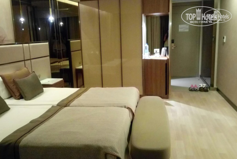 Отель: При заезде нас сразу разместили в новом номере. Единственное за что пришлось доплатить это за сейф: 2 евро в сутки. Зато мы знали что наши вещи в сохранности. Новые шикарные номера, как на фото. Доплачивать не за что не пришлось. Все вещи помогли донести, все показали, объяснили. Так как знаем английский, проблем не возникло абсолютно нигде.