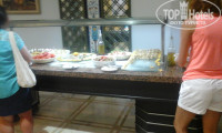Были в этом отеле с 29 июня по 8 июля. При размещении в отеле дали не очень удачный номер - с видом на стройку и птицеферму с кукареканьем и лаем, впрочем, шум не очень мешал, хотя хотелось лучшего. С погодой не повезло в первые три дня: море штормило, водоросли, медузы, купаться в нем было невозможно. Но большой хороший бассейн компенсировал первые дни. Затем погода устаканилась, вода в море чистая, теплая, плавать - одно удовольствие. Особенно хочется отметить питание в ресторане. Зал большой, просторный, официанты очень расторопны и стараются выполнить все просьбы. Большой выбор блюд, включая говядину, ягнятину, рыбу и проч. Очень вкусная выпечка, отличное мороженое, из фруктов: арбузы, дыни, персики, нектарины, абрикосы. В общем, объедались и радовались всей этой вкуснотище. Анимация тоже очень активная, ребята стараются вовсю. Может, и не очень профессионального уровня, но вечерами не скучали. Дискотека с 12 до 2 ночи. Из минусов - обслуживание номеров. Какая-то странная система: с утра ставят под дверь большую бутылку воды и забирают все полотенца (без уборки номера!). Приходишь с пляжа - полотенец нет, помыться в душе - проблема. Приходилось носиться по коридорам и выпрашивать полотенца у горничных. А в остальном - твердая четверка этому отелю, но второй раз я бы в него не вернулась.