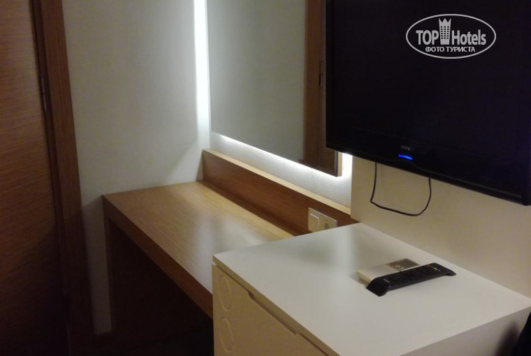 В номере есть все что нужно для комфортного проживания. В одной комнате одна двухспальная и одна односпальная кровати, кресло, две тумбочки, телевизор с русскими каналами (мы если честно, включили его только один раз), кондиционер, сейф (3$ сутки), зеркало, холодильник с мини-баром (вода негазированная, вода газированная на каждого человека пополняются ежедневно), балкон со столиком и креслами. В другой комнате - две односпальных кровати, тумбочка, зеркало, телевизор, холодильник с мини-баром, кондиционер. Между комнат вместительный шкаф, огромное зеркало. Ванна с туалетом смежные. Вся сантехника в отличном состоянии. Есть фен, жидкое мыло, шампунь, кондиционер для волос, шапочка, ватные диски. Все очень чисто, красиво, просторно. Интернет есть везде и хороший сигнал.