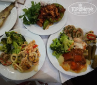 Это вообще отдельная тема... Такого количества еды я ещё, честно говоря, не видела. Вся еда очень разнообразная, безумно вкусная и очень важно - свежая!!!. Всегда можно накормить маленьких детей, подростков (которые очень любят фас-фут). В меню были: курица, мясо (жареные, тушеные, вареные), рыба на углях (очень-очень вкусная), в рыбный день был морской коктейль (креветки, мидии, кальмары), овощи (свежие, тушеные), также была и картошка в разных видах, и макароны, фрукты (арбуз, клубника, сливы, персики, яблоки, апельсины, абрикосы). Напитки: чай, кофе (очень вкусный), соки (быстрорастворимые), фанта, пепси, спрайт, из алкогольных - пиво (достаточно хорошее), раки (пектусинчик - мне не очень), виски-пепси (очень даже ничего), остальное не пробовала, но слышала, что вино красное и белое не плохое. Tropik Bar (свежевыжатые соки 2$) в баре на пляже и возле бассейна.
