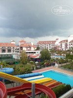 Довольно большая территория. Очень много зелени, пальмы, очень красивые цветы. 10 бассейнов (6 открытых бассейнов, 2 детских бассейна с горками, взрослые горки (работают с 14 до 16 часов), крытый бассейн с подогревом!!!
