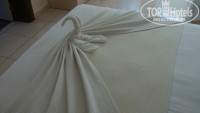 Расчетный час в отеле - 12 часов, мы приехали раньше, заселения пришлось подождать примерно 1,5 часа. Видимо отель заполнен и свободных комнат просто не было или их убирали. У нас был оплачен стандарт, заселили в 3 корпус на 2 этаже. К номеру претензий нет, довольно просторный, свежий ремонт, отличная новая мебель, чистота. Одна большая 2-спальная кровать и одна поменьше на 1 человека. В номере телефон (можно например позвонить на ресепшн чтобы не ходить туда, или в другой номер если вы приехали компанией), фен, кондиционер, мини-холодильник с питьевой водой (по 0,5 на человека), плазменный телевизор (всего 2 русских канала, но нас это не напрягало, мы чаще включали MTV с музыкой или инфо-канал отеля, в конце концов не телевизор приехали смотреть). Отдельно хочу отметить подушки - это просто прелесть что такое, для меня оказались супер удобными, лежишь как на облаке, не нужно ничего поправлять и трамбовать, чтобы придать удобоваримую форму))). На полу плитка, боялась что будет холодно ногам, но нет, ходили босиком, даже носки-тапочки не понадобились. Приятное впечатление оставили такие мелочи как фирменные пакеты в шкафу для сдачи одежды в прачечную, в санузле для упаковки санитарных материалов, различные информационные брошюры, мини-блокнот с бумагой для записей, опросный лист с отзывами и предложениями, очень большое количество вешалок-плечиков для одежды.
