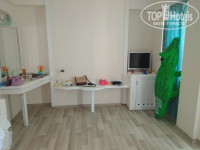 Вот настал долгожданный отпуск и мы поехали в Турцию по давно забронированому туру. Нас было 4чел. Я моя мама 68 лет дочь 8 лет и сын 14 лет.Наши разочарования начались уже с рецепшена. Нам дали номер,который называется фемели рум. Это значит одна двухспальная кровать, деревянный диванчик для просмотра телевизора и кресло. Это на 4человек!!!! После как я пошла на рецепшн и попросила поменять номер( в чем отказали) нам принесли раскладушку. Раскладушка это у них матрац на полу. Это отель5*!!!!. На рецепшн менеджер отеля просто хам. Он не умеет разговаривать с людьми, умеет только орать. На следующий день я опять просила поменять номер, отказали и принесли раскладушку. Так мы проночевали ещё одну ночь. Кондиционеры старые не охлаждают. Номера выходят на дорогу и постоянный шум.на 4день все таки я добилась чтобы нас переселили в другой номер. Окна выходили на бассейн, но кондиционер не справляется. В 211номере у нас была двухспальная кровать деревянный диванчик и маленький диванчик для просмотра ТВ. На нем у меня дочь уместилась еле еле. Туалет тек. В номере убрались 1рпз при заселении. Потом после ругани на рецепшн у нас пришли убираться 2раз. Постель меняли мы сами. Полотенца тоже. Пляжные полотенца меняются 2раза в неделю.(отель 5*). Еда однообразная и постоянные очереди в столовой. Чтобы на ужин сесть на улице столик надо было занимать с 16 часов. В столовой кондиционер не работал ешь и обливаешься потом супер отель5*! . Ресторан алякарт вообще рестораном назвать нельзя. Забегаловка на море. Единственное кто молодцы, так это аниматоры! Им огромное спасибо, если бы не они то вообще настроения не было отдыхать в этой помойке(другими словами не назовешь)!