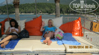 Очень понравилось расположение отеля!!!Всё рядом бассейны,сразу море,бары.Персонал очень хороший,по русски хорошо понимают,питание отличное.Пили пиво,на ресепшене качество пива намного лучше,чем у бассеина.Номер у нас на троих был на первом этаже,когда у кого то не было ключа,заходили через балкон.Были дискотеки,после анимации,ходили на спорт площадку,она находится у моря не далеко от отеля,брали велосипеды в прокат,катались по Бодруму.Ездили на рыбалку,улов конечно был маленьким,но нам эту рыбу сразу приготовили.,были на острове Клеопатра,очень понравился тур в аквапарк.Находились в отеле 15 дней и не сколько не устали.Всё очень понравилось!!!Отель рекомендую!!!