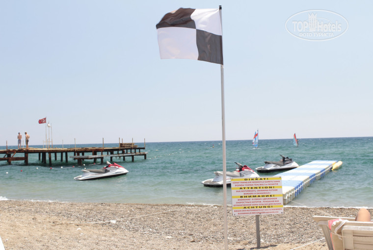 Но он маленький, просто зажат другими отелями, рядом лодочная станция со скутерами и пр. – все это ограждает и без того маленький клочок берега. Ощущение стиснутости не покидает, разве что занять лежак поближе к воде, но том все занято с раннего утра. Так что мы день проводили возле бассейна в отеле, вечером после 6 ходили на пляж соседнего отеля Eldar, тоже, кстати говоря , 4 звездочного, но разница - небо и земля. Мы гуляли по береговой линии и везде прекрасные большие просторные пляжи, границ как таковых нет – стоит охранник и смотрит браслеты. Надеюсь, в перспективе отель Larisa арендует пляж получше, а пока с этого аспекта совсем все печально.