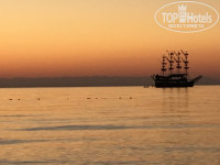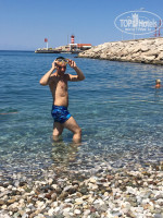 Пляж: своего пляжа нет, но есть трансфер до пляжа Qualista beach - стоит 2$ с человека, в стоимость включён лежак. Если ты приходишь сам, то стоимость лежака взлетает до 5$ (Идти до моря (песчаного пляжа) около 15-20 минут и ОЧЕНЬ жарко, тени от растений почти нет. До галечного, в принципе, так же по времени через ул.Лиман, но хуже: улица закрытая от ветра и там совсем душно). Городского пляжа почти и нет: небольшая полоска пляжа шириной 3 метра на галечном пляже. Мы отдыхали на больших камнях на краешке песчаного пляжа (хотя это и не песок вовсе, а мелкая галька - босиком ходить больно), там, где мост через вход в рыбацкий порт. Само море там очень грязное: плавает мусор, огрызки еды, щепки, куски облупившейся краски с лодок, но в других местах не было места, где расположиться на полотенце без лежака.