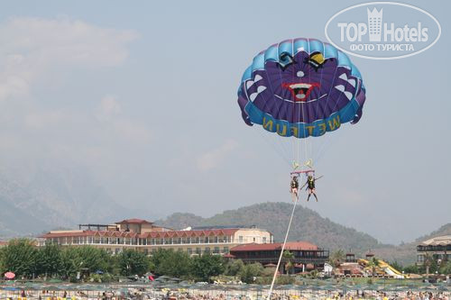 Отдохнули с подругами весело и содержательно, есть что вспомнить. :))) В отеле все очень дружелюбные и приветливые. Многие говорят по-русски, так что проблем с пониманием не возникало. В номерах убирались регулярно, притензий не вызывало. Питание качественное. Может быть бывает и более разнообразное, но с качеством не поспоришь! спасибо шеф-повару!Анимация супер! заводные, веселые, вечно как что-то придумают! :) с утра утренняя зарядка, акваэробка, волейбол, водное поло, степ-аэробика и т.д. и т.п. А еще рядом на пляже есть водные виды спорта (банан, парасайлинг,....) Дороговато немножко, но очень прикольно! :)) Кстати кто-то писал, что фото отеля не соответсвуют действительности! так посмотрите: пока мы летали на парашюте, нас сфоткали с лодки, так получилось почти как на фото отеля. :)))