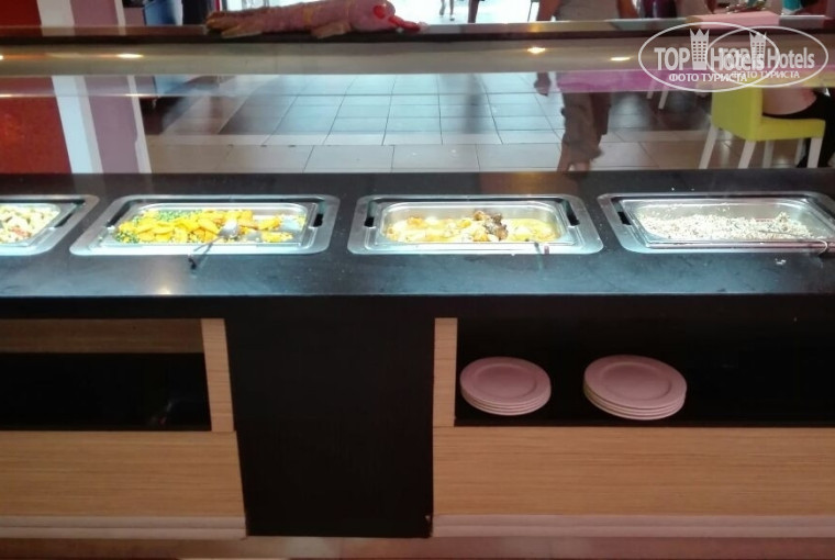 Что касается рациона, он в принцепе очень редко менялся. Я человек не привередливый и всегда отдыхал в отелях не больше 4 звезд, а то и в Крыму на базе, где в принцепе шведского стола нет, а есть просто обычный столовняк с обычным рационом. Завтрак стандарт: хлопья, яйца, омлет, 2-3 каши, овощи, фрукты , и сладкий джем ! На обед и ужин рацион естественно меняли, добавляли 2 супа, мясо на гриле , рыбу, курицу. Так же был неплохой выбор пироженых,а вот сладких булочек почему то и вовсе не было...но остались все те же фрукты это дыня и арбуз ими нас кормили 5 дней, потом о Боги =) нам добавили апельсинов, бананов и это был праздник. Так же был виноград и яблоки но кислые и не первой свежести. По непонятным причинам не было мороженного,что очень странно учитывая жаркий климат и страну куда некоторые приезжают покушать именно его =). В целом ни сказать, что выбора не было, но и разгуляться увы... особо не приходилось, так как каждый день было одно и тоже, а чего то и не было вовсе!!!