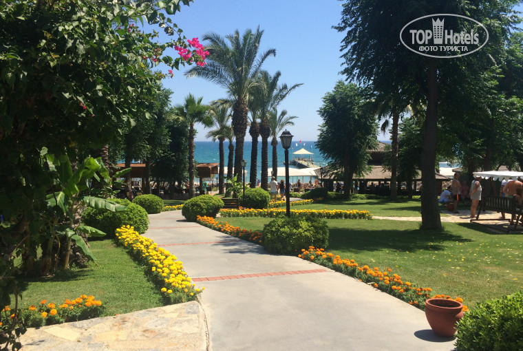 Только прилетели с турции, сразу решила написать отзыв. Прилетели втроем с дочкой 4 года 29 июня в 12:00 в Анталию, принимающая компания "Одеон" (Корал тревел) встретили, рассадили в автобус и через час мы были в отеле (первые из всего автобуса). Нам радушно предложили сначала пообедать, а после прийти за карточкой от номера. Дали номер 1208 на втором этаже, с боковым видом на море. По поводу видов из номера чуточку напишу. Вид на море представляет собой не полный горизонт моря, а лишь чуточку, поскольку отель стоит на возвышенности и море загораживаю пальмы высаженные на спуске к море. У этих номеров балкончики скорее выходят на бассейн и чуточку моря. Это их плюс. Минус таких номеров: вечерние шоу и дискотека до 23:00 на улице, немного слышно, но нам если честно это не мешало, поскольку мы ложились спать после нее, а после 23:00 она переносится в закрытое помещение, чтобы не мешать людям отдыхать.