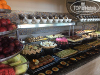 Завтрак с 8:30-11 Выбор огромный. Для деток с утра: 3 вида каш (гречневая, манная, овсяная, рисовая на выбор), стол с множеством видов сыров. Блинчики, оладушки, вафли. Штуки 4 разных соусов к ним: шоколад, клубника и прочие. Отдельная тема МЕД! В этом отеле предлагают мед прямо с СОТ!!! не баночный, не в тарелке, а прямо соты ставят и ты сам срезаешь сколько тебе нужно! Это большой плюс! Мед 100% натуральный. Сухих завтраков просто полно, джемов, халвы, о фруктах я просто молчу: персики, нектарины, сливы, абрикосы, виноград, ананасы, дыни, арбузы, бананы, клубника. также с утра йогурты: и диетические и обычные, нескольких видов, если написано клубничный, значит в нем обязательно есть целые ягоды клубники, то же самое и с черешневым и другими видами. Компоты видов 6, соки всегда: черешневый, персиковый, яблочный, ананасовый, молочные коктейли: клубничный, банановый. Для взрослых суп, различные яичницы, нарезки мясные, сырные, соте из овощей, сосиски и прочее. Голодными не остаетесь, даже утром! Вкусняшки отдельная тема: их миллион, для вкусное!!!