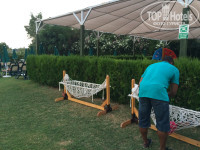 Территория отеля не большая, но это даже плюс! Она не маленькая, что ходить не где, но и не огромная! Нам в самое то! Все рядом, все очень хорошо территориально продумано. На территории есть прудик, где плавают 2 лебедя, очень красиво. Висят гамаки для взрослых и для малышей. Организованы игры в волейбол, лук, дарц. Аниматоры для взрослых работают на УРА! Есть небольшой магазинчик, где можно по приемлимой цене приобрести все для плавания, сувенирчики. Но в этом почти нет необходимости, поскольку прямо при выходе из отеля в 5 метрах открывается вид на огромный рынок, для можно купить все что душе угодно, тут же есть аптека, кожа, золото, текстиль, игрушки, куча всего. В корпусе отеля есть парикмахерская, муж стригся за 8 долларов, очень красиво подстригли между прочим. Территория и бассейны все чистое!