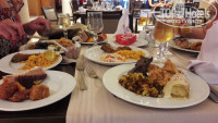 Само питание для меня было приемлемым, такой вкусной, свежей, нежной баранины из казана (казан стоит на столе, отдельно от основных блюд), я нигде доселе не ела. по утрам в ресторане и в барах, в течение дня, дают свежевыжатые фруктовые и овощные соки, что является большим плюсом, каждый день было мясо говядины, барашка, курицы, из рыбы и рыбных продуктов были поочередно: "морской язык" в кляре и без кляра, тунец, мелкие костлявые рыбешки, креветки, кальмары, осьминожки, попала даже на мидии, про гриль, как правильно писали в отзывах, не дожаривают, что было для меня минусом, т.к. приходилось ворошить в подносе, чтобы найти прожареный кусок; мороженое, очень вкусное,подают в ресторане, не надейтесь его поесть в послеобеденное время в барах, как в Турции. перекусить между приемами пищи вы можете только обратившись к официанту бара "Рандеву", который принесет ваш заказ из ресторана. Фрукты и овощи нереально вкусные, со вкусом настоящих фруктов и овощей, а не китайской безвкусицы!