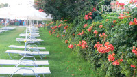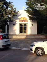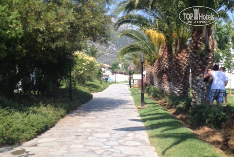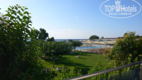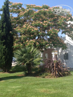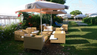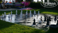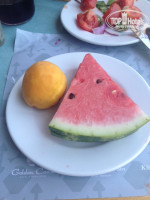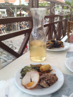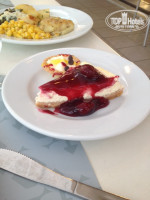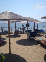 Для более информативного отдыха в этом отеле желательно знать английский язык, хотя бы на бытовом уровне. На рецепшене говорят на греческом, французском и английском. В ресторане названия всех блюд тоже написаны на этих трёх языках, поэтому, зная перевод, вы более конкретно будете выбирать себе еду, Например, на ужине, прохожу я равнодушно мимо маленьких тушек, думаю, цыплята, наверное, ан, нет, прочитала "rabbit" - кролик и решила попробовать. Была и утка "duck" и отварной язык, по виду понятный без перевода, индюшка "Turkey", не говоря уже про говядину, свинину и баранину. Много было фруктов: киви, грейпфрут, апельсины, арбуз, дыня, абрикосы, очень крупная сладкая черешня, яблоки, сливы. До мороженого у нас дело не доходило, сильно наедались, всё хотелось попробовать. В этом отеле большое раздолье любителям вина и пива: можно самим наливать себе сколько захочется без ограничений. Утром всегда есть свежие круассаны, маленькие блинчики с шоколадной пастой - вкусно!!!