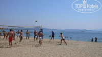Пляж отличный, нам больше понравилось плавать справа от выхода на пляж, там лучше дно. Вода была изумительной, чистой, ласковой, спокойной. Последние дни перед отъездом были немного пасмурными и с небольшим ветром, но мы всё равно плавали.