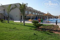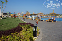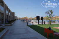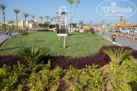 Эффектный зал рецепции и прилегающий к нему бар сразу при въезде впечатляют. Все убранство вполне соответствует фотографиям на сайте. Территория очень чистая, ухоженные зеленые зоны. В течение всего дня работают садовники, мастера периодически что-то подделывают. Зелень к концу июня уже подросла и вся территория, на мой взгляд, очень даже зеленая, как для первого года. Много посажено пальм, которые еще небольшого размера, но очень украшают и радуют взгляд. Обслуживающего персонала очень много. Бассейнов очень много, их постоянно по вечерам чистят, меняют воду, вымывают плитку. При каждом бассейне есть спасатель. Но ооочень скользко, если на плитке мокро!