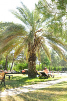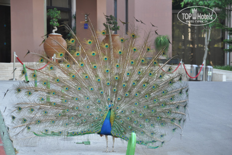 Отличная зеленая территория со множеством сосен, раздолье для детей и море удовольствия от присутствия павлинов, гусей и рыбок в прудиках.