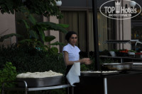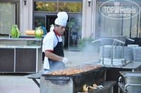 Еда понравилась. Каждй день рыба, мясо, как отдельно, так и вперемешку с овощами. Фрукты - арбуз, дыня, сливы, абрикосы, нектарины. На рынке покупали клубнику - 2 доллара за килограмм. Мороженое в отеле платное - от 0,5 до 2 евро, покупали пару раз. Грязной посуды я не видела, тарелки скорее пошарпаные. Если чистота, например, ложек вызвала сомнение, у меня всегда с собой были влажные салфетки.