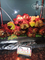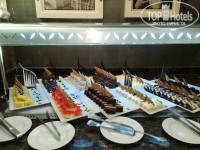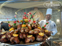 Питание очень разнообразное, схема работы ресторанов позволяет прийти в удобное время (есть поздний завтрак и ужин). Мясо курицы, утки, индейки, говядина, баранина. Креветки и кальмары. Из фруктов яблоки, дыни, арбузы, персики, финики, виноград, бананы, апельсины. В спортбаре хорошие коктейли, в Колумбус отличное кофе и капучино. Питьевая вода в номере и любом баре и ресторане.