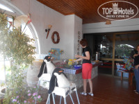 Завтраки поздно с 08-30 до 10-30. На завтрак каждый день одно и то же: творожный йогурт, нарезка сыра, ветчина, мюсли, джем, масло, молоко, сок, чай, кофе, хлеб, хлеб белый. Но йогурт и сыр такие вкусные, что ели каждый день с удовольствием. Если есть желание можно пообедать в отеле. «Обедо-ужин» - так его называют, т.к. тоже очень поздно в 16-00. Записываться нужно заранее, обычно на завтраке висит обеденное меню. Обедали при отеле один раз, т.к. в основном были на экскурсиях, да и в местные таверны хотелось заглянуть. Цена обеда примерно как в тавернах. Рядом таверна «Mitato» и «Мама Катэрина». Больше понравилось в «Mitato».