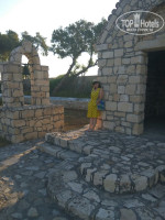 В номере две кровати, тумбочка с зеркалом, тумбочка под чемоданы, два пластиковых кресла на балконе, стул. Шкаф, встроенный сейф (платный, мы не брали, все ценное в чемодане под замком), десяток вешалок. В ванной душ (действительно с маленьким поддоном). Фена нет. Маленький кусок мыла выдается разово при заезде, из рук хозяина (видимо ПРИЗЭНТ). Туалетную бумагу подкладывали через день, в конце скопилось несколько рулонов. Холл и коридоры уставлены старинной утварью. Очень мило! Как в музее, приятно было все разглядывать. Во дворе бассейн с хлорированной водой. Двор очень ухоженный. Имеется маленькая часовенка. До пляжа близко, метров 50 примерно. Вход в море хороший, пологий.