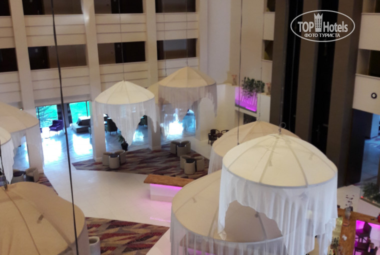 Приехали в отель поздно, в пол 11 вечера, в пятницу. Мест в отеле не оказалось! Как позже узнали, в выходные был день молодежи и местные заселили весь отель. Т.к. столкнулись с таким впервые, были шокированы и разозлены (таких отдыхающих оказалось оочень много и все были в шоке) . Дали якобы бонусом карточки на бемплатный массаж ( оказалось дают при заселении всем, на 15 миеут пробного массажа), пообещали фрукты и вино в номер (витоге были только фрукты как на ужин), хороший вид из номера (это выполнили). Пришлось переселиться до понедельника в отель напротив maritim saray 5* с "прекрасным" видом на стену с кондиционерами. Отель попроще, но получше.