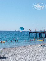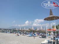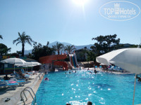 ухоженная зеленая зона с бассейном под открытым небом. Что сразу бросается в глаза - это приветливый и внимательный персонал отеля. Номера небольшие, но уютные, чистые и с хорошим кондиционированием. В самом номере мы находились только ночью, когда приходили спать. Все остальное время мы проводили или на пляже возле моря с прозрачной и теплой морской водой или возле бассейна, на территории которого расположен мини-дискобар, где с удовольствием играют и отдыхают дети. Возле пляжа находится променад или дорожка, выложенная мозаичной плиткой и соединяющая между собой другие отели. По этому промеду приятно прогуливались как в дневное, так и в вечернее время, где можно послушать музыку и отдохнуть в прибрежных кафе-барах.