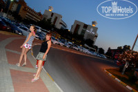 Территория:Как по мне так она большая,все в зелени,цветах,много бассейнов,как для детей так и для нас,есть крытый,который мы тоже испробовали на ныряния и прыжки,а так же водные горки(это вообще отдельная тема...как я слетев с одной с них,оказаласьсверху практически топлес...,хорошо муж прикрыл,смеялись от души потом),так что девчат только в слитном купальнике туда,швы немного чувствуются,но чуточку присядьте ,намного лучше....)Лежаков всегда хватало всем и утром и вечером...,вообще в этом плане главный менеджер умничка,продумано хорошо все,лежаки не пластиковые,что опять же удобно и детям и взрослым.