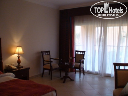 В самом отеле много зелени, номера просторные,в номере сейф, холодильник(еле морозит, обращения на ресепшен не помогли), LCD-телевизор (3 русски канала (1, РТР-планета, RU-TV), нет ванны (только душ), балкон с двумя стульями. Чистинько убирают каждый день (чаевые не ложили). Есть одна проблема - 2 бутылки воды в день заезда и все (набирайте в кулерах).