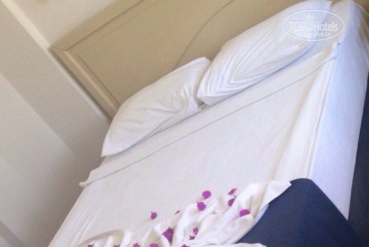 Дали номер из двух отдельных комнат с общим санузлом и коридором. Для нас это было МЕГА удобно. Мы жили на крыше, вид на бассейн и море завораживал... На второй день на балконе, хотя нет, это была целая терраса, нам засадили цветочки?. Было очень приятно!
