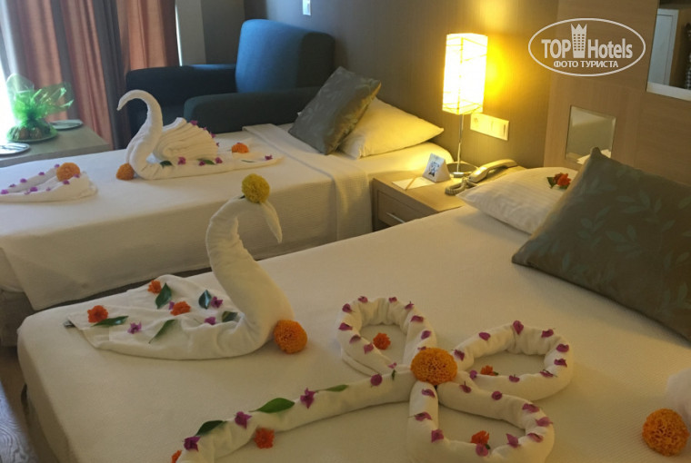 Отдыхали в июне двумя семьями с детьми 8 и 2 лет ! Разместили моментально в стандарт с видом на дорогу ,номер был красиво украшен,тк у супруга был др ! Друзьям на след день поменяли номер. Ресепшн идёт на контакт и гид Пегаса помогает с вопросами. Конечно , ключевую роль в отдыхе сыграла Наталья ,которая заранее помогала с организацией праздничного ужина и весь отдых решала вопросы и наши пожелания ! Очень милая , понимающая девушка скрасила наш отдых как могла ,за что ей большое спасибо!!! Отель ,конечно, с большой натяжкой на 5 звёзд , это выражается в скромном ( но чистом) номере, территория скромная ,но уютная . Мы не хотели большую территорию и активную анимацию как в 5-как Делюкс . Зато ребёнок спокойно мог сам передвигаться по территории и кататься с горок . Это не Rixos и др отели этого уровня ,в которых я бывала ,НО нужно понимать и разницу в цене !!! А она минимум в два раза там выше ! Соответственно уровень номеров, питания ,услуг именно на эту сумму . Смешно ,конечно, что платный сейф и wi-fi , это прямо как каменный век! Уж лучше б в путёвку включили эти 10-20$ . Мы приехали с хорошим настроением и не стали мотать силы и тратить время на переселение в др отель! Через три дня нам уже все нравилось , еда не шик , но мясо-рыба всегда были в ассортименте . Неплохие супчики ,зелень ,овощи ( смешанные салаты не едим )Изысков не ждите , спиртное на троечку , смогли пить только белое вино . Соки -юпи хим поэтому ребёнок пил воду , кстати вода всегда и везде в неогр количестве в бутылках. Персонал старается устраивать красивые вечера ,турецкую ночь , пенную дискотеку ( дети в восторге ),салют . Анимация нас не интересовала ,но дети с удовольствием ходили на мини-диско . Нет пренебрежения к русским ,да их там 90% ! Наталья рассказала нам про возможные поездки по региону и нас это очень выручило, разнообразив наш отдых! Брали такси и ездили в Фазелис на целый день , там шикарное ,чистейшее море ,сосны , виды -незабываемые два дня там провели !!! Если вы едите с хорошим настроем и трезво понимаете уровень отеля ( бюджетная пятёрка) -скромные небольшие номера и кровати ( постельное всегда меняли и к уборке нет претензий) , скромная территория ( достаточно зелёная и ухоженная) , питание и алкоголь без изысков и деликатесов типа креветок , кальмар , итд ,шампанского тоже нет ,Но голодными точно не останется никто и мы привезли по 2 кг даже ,хотя сладости не ели вообще! Кстати арбуз , дыни были всегда и хорошие! Мы остались довольны отдыхом за небольшие деньги! Не пытайтесь искать роскошь в этом отеле ,тк роскошные пятёрки стоят в разЫ больше.