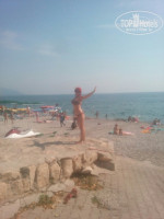 От отеля до моря 10 мин ходьбы.Проходишь мимо небольшого парка.В нем живут курицы,кролики,павлины.И самое смешное с ними жила кошка с котятами)).Шезлонги платные,море чистое.