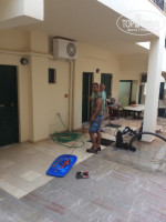 По приезду в отель нам сообщили, что произошел сбой в программе и вышла накладка, свободных номеров нет (на мой взгляд это жадность отеля, который дает больше подтверждений, чем позволяет их номерной фонд). Очень извиняясь (спасибо Андрею на ресепшен - очень вежливый и приятный сотрудник отеля, говорящий на русском языке) он попросил на одну ночь переехать в другой отель, неподалеку от данного отеля, трансфер и питание они организуют. Нас отвезли (внимание!) на старом, грязном, без кондиционера авто в отель Gouves bay hotel. При размещении мы очень расстроились,т.к. данный отель походил больше на гестхаус чем на отель. Самое печальное было - отсутствие горячей воды, но приагался чайник, видимо ля того чтобы греть воду. Но мы решили не расстраиваться, т.к. впереди нас ждал отличный отпуск. Но не тут то было. Когда мы пошли обедать - мы поняли, что это тур для стройных или худеющих. Еды не было, а то что было - невозможно есть. Макароны с сыром и непонятно с чем, походили на еду для свиней, овощи были кислые и страшно есть, курица либо сырая либо горелая, рис и бобы и все!!! утром еще яичница добавлялась. Из фруктов арбуз и дыня - явно недозрелая и долго лежавшая. И самое интересное - не было хлеба, либо он заканчивался моментально, одни сухари, которые невозможно есть. К сожалению фото не сделали, очень хотелось бы передать всю "красоту" подаваемой пищи. Чая не было, точнее то что было больше похоже на солому. Посуда грязная, разномастная, вечно не хватало чашек и она не убиралась со столов. Если вы не пришли к моменту начала завтрака, обеда или ужина, то посуду приходилось ждать, потом долго тереть ее салфетками, а потом долго искать пустой чистый стол. Приходилось питаться в близлежайших кафе за деньги при отеле "все включено". Из напитков "все включено" - пиво, которое разбавлено до состояния воды, и вино белое и красное - не смогу даже прокомментировать его, дабы "это" не возможно было проглотить. Но это еще не все, все сюрпризы нас ждали впереди! Пляж, на фото предоставленное отельером - чистый ухоженный пляж с лежаками, но не тут то было. Пляж, который относится к отелю не более 10 метров с 25-30 лежаками!!!! при 200 номеров в отеле!! Как вы понимаете, мест не было. Занять лежак не предоставлялось возможным, т.к. было разрешение от отеля, если лежак занят (полотенцем или еще чем-то) но при этом нет самого гостя, то можно его вещи убирать на лестницу!!! Где мы и нашли наши вещи, когда ходили на ресепшен. НО, рядом был чистый плаж, с хорошими лежаками и зонтами за 7 евро в день. Кстати его и показывают на фото на сайтах. Так же в отеле нет пляжных полотенец - ни платных, ни бесплатных. Данная информация нигде не указана. Не забывайте полотенца, т.к. в данном районе цены завышены порядком на 30% от например в Херсонисе. А теперь самое интересное! На второй день мы переезжаем в наш такой "долгожданный отель" и нас размещают в наш номер. Наша большая ошибки при покупке тура, что мы не обратили внимание какой нам номер продали (тур приобретали в Чиптрипе), фраза сотрудника о том, что номер ВОЗМОЖНО будет Grand FLOOR STANDART, но и может другой, мы пропустили мимо ушей. Виноваты сами. Итог, это полуподвал с видом на стену и лестницу, которая ведет в бассейн из которого стекала вода на ступеньки к нашему номеру и на наш "балкон". Дальше - веселее. Данный номер распологался рядом с технической комнатой, в которой п