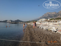 Заход в море мелкая галька. СМ. Фото. Так что без кораллок ( специальная обувь для плавания) будите исполнять ламбаду.