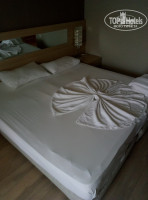 Номера (у нас был стандарт) - не большие, но нам с девушкой места хватало, балконы французкие, маленькие, стол и стула там не поставить (но в номерах Джуниор и Фемили номера с балконами где можно стол и стулья поставить). Убирают каждый день, все чисто, мебель не затяганая, шампуни и гели и кондиционер для душа дают, фен есть настенный, в мини баре только вода, телевизор плазма, каналы: стс, тнт, первый, 2+2(еще были русские но не помню) и турцецкие.