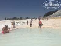 Отдыхали в этом отели семьей, брали два номера. В одном жили мы с мужем, в другом ребенок с бабушкой (поселили через номер). Начнем по порядку путевка от санмар, перелет уральские авиалинии. Вылет был 14 июля в 12:40 Домодедово рейс славу бога не перенесли, начитавшись отзывы об уральских готовились к худшему и обратно 24 июля рейс задержали на 20 минут, туда летели 3:40, обратно 3:15 (еще хочу добавить когда туда летели регистрация на рейс была онлайн за 12 часов открыта, обратно ее нет. В аэропорту Бодрума продают места по 15 евро и 25 евро, и наш народ покупает я в шоке). Прилетели в аэропорт Бодрума, быстро все прошли и сели в автобус, до отеля ехали часа 2,5 это просто ужас и еще нас высадили не возле нашего отеля, гид обьяснила что новый водитель и не знает дороги. все уставшие после перелета и жары, пока тряслись в автобусе пошли в отель. Заселили сразу, в паспорта никаких денег не клали. Только попросили чтоб номера были рядом, нам дали номера 7201 и 7203. Посмотрели номера и пошли на ужин. Номера обычные. Территория отеля вся в цветах и в зелени. Есть три бассейна один совсем для маленьких с маленькой горкой, второй просто бассейн, третий с двумя горками- очереди чтоб прокатиться не было. Между отелям и пляжем есть не большая дорога, она как набережная идет, мы вечерами ходили по ней гулять. Море очень чистое, специальная обувь для входа в море не нужна. Лежаков всем хватало, на пляже есть душ. Бара нет на пляже нас это не напрягало, мы туда летели купаться в море. Мы попали когда было землетрясение, что могу сказать ни одного представителя русско-говорящего ни от одного туроператора не было. Турки все быстро собрались и уехали, а мы просто сидели на улице. Хочу сказать что отель построен хорошо, разрушений никаких не было. В пятницу у знакомых были куплены экскурсии и гиды им хотели вернуть 80% от стоимости путевки и сказали ничего страшного нет, но одна гид была хорошая девочка Анастасия когда ее спросили стоит ли ехать на корабле она сказала, что это не безопасно. В итоге через день вернули 100% от путевки, но все не все гиды. Гид Сергей и Николай это просто ужас мы позвонили ночью узнать что произошло и почему нет никого из представителей, они нас просто послали и вообще у них много отелей, и им все равно до нас и что с нами (номер телефона одного из них +905532397325). По поводу еды в отели, фрукты были всегда (персики, нектарины, абрикосы, сливы, яблоки, груши, арбузы, дыни), мороженое на обед дают, потом с 16-17 возле бара, вечером на ужин. Посуда не всегда чистая, иногда приходится ждать чистую. Питание разнообразное, но на любителя ( говядина, баранина, курица, рыба разная, грибы и т.д.в общем найти можно что поесть). Брали экскурсию по памуккале, ехать где то часа 4 с остановками, но обратно это была каторга завезли пообедать, а потом повезли на дегустацию вина, потом на фабрику где можно купить белье и полотенца ( по времени это очень долго было не один час), экскурсовод был Магомед не понятно что рассказывал, ужас просто. По поводу анимации могу сказать, что ее в отели ее нет вообще. Есть вроде детский клуб, но не знаю работает он или нет. Отель подходит для тихого семейного отдыха. Wi-Fi платный и работает ужасно просто