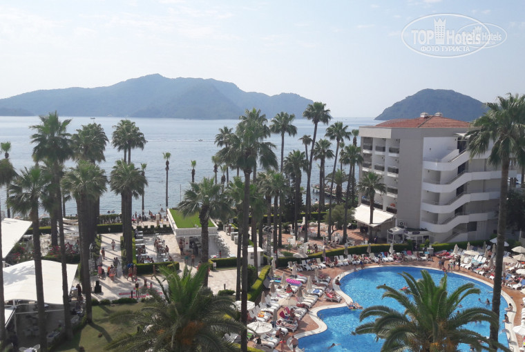 Самое главное, о чем хочется написать, это очень дружелюбный персонал! Заселили быстро, номер дали в главном корпусе с видом на море и бассейн, ничего не доплачивали и специально не просили. Вид потрясающий! Все шоу смотрели с балкона, очень удобно)).