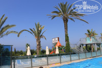 Территория - ухоженная и зеленая, три бассейна, которые закрывают в 18:00 для уборки , горки в маленьком бассейне.