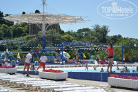 Отдыхали семьёй в самое жаркое время. Само Сочи как всегда. Зелено и много воздуха, приятного на вкус, Но...Поселили в 8 корпусе. Не селитесь в него. Советуем. Сначала три дня не работал один из лифтов. 15 этажей, чтобы добраться до своего надо ждать, чтобы все этажи проехали. Ладно ещё вверх, но спускаться с 11 приходилось пешком, иначе не дождаться. В одном лифте в 40 градусов на улице и НЕ РАБОТАЕТ кондиционер. После жалобы в основном корпусе пустили второй лифт.. Полотенца меняют 1 раз в ТРИ дня??? С собой на пляж не носить?!? Не застилали и не перестилали НИКОГДА. Окна слишком низко стоят и, не дай Бог, можно споткнуться о поребрик у окна и свободно вылететь. С моим ростом 188 самое то. А если дети? Ужасный душ, который совмещён с туалетом, поэтому пока сольётся вода из душа, в унитаз трудно даже выбросить бумагу, а не то что сходить. Свет только ночниками. Больше нет!!! НЕТ ТЕЛЕФОНА. Поэтому, чтобы попросить у администратора надо- спуститься с 11 этажа (в нашем случае) потом ждать пока поднимешься. Ответ на то, почему нет телефона смешной - нет коммутатора!!! WIFI только в лобби работает, в остальных номерах когда как. Аквапарк большой, красивый, даже пиво с соком для детей дают. Но... Для детей которые не умеют плавать и младше 12 лет нет выбора. Половина детских горок на ремонте. Хотя большим скатиться можно с удовольствием. Пляж хороший, достаточно чистый. Много лежаков на выбор. Хорошее кафе Белый пляж. Радовало душу и настроение. С живой музыкой вечерами. Смешно было, когда в самый сезон стали ремонтировать спуск к морю. Разобрали все ступеньки и не особо переживая за людей красили и ремонтировали. При просьбе поменять номер предложили номера другие. Удалось выбрать 5 этаж, ближе к столовой. Еда совсем обычная. Всё же юг, но ни помидор, ни огурцов, ни кабачков, ни баклажан и это в июле не было ни разу. Только бананы, апельсины и яблоки. Кофе : "пыль дорог" совсем невкусное и только с утра. Мяса много и разное. Вкусная выпечка. Пиво каждый день и вино :). Но на любителя. В кафе пиво на уровень выше.