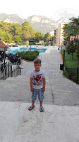 Отдыхала в этом отеле с дочерью и внуками (12 лет и 5 лет). Дочь была в этом отеле в 2014 году, ей понравилось и решили вновь поехать в этот отель. Отель бюджетный, полностью оправдывает свою цену. Ехали мы с туроператором анекс тур, авиаперевозчик азур эйр. Всё понравилось, летели без задержек. Заселение прошло отлично, заселили сразу (думаю повлияли волшебные чаевые 10 долларов), дали ключи от двух номеров в главном корпусе на выбор (мы сами попросили в этот корпус). Один номер(117) был большой сразу выбрали его, но побыв в нём 10 минут поняли, что не сможем в нём жить, так как что то гудело. Пошли попросили переселить в другой номер, переселили без проблем. Принесли дополнительную кровать, номер небольшой, но места хватало, маленькому внуку даже бегать и прыгать в нём. Территория большая, ухоженная, 3 бассейна: детский (лягушатник), большой взрослый и с водной горкой. Теперь напишу что понравилось и что не понравилось. Персонал в отеле очень доброжелательный, стараются угодить. Многие пишут, что в ресторане не убирают посуду, мы такого не увидели. В ресторане достаточно много обслуживающего персонала, убирают всё хорошо. Я удивлялась туристам как себя ведут сами туристы: набирают столько еды, как будто едят в последний раз, всё остаётся в тарелках, бегают по рестарану, роняют на пол еду. Удивляюсь как можно из такого ассортимента не выбрать для себя, что покушать. Очень много разных салатов (мешанок), я кушала только свежие овощи поэтому сказать вкусные они были или нет не могу. Очень вкусные баклажаны в разных вариантах, анчоусы маринованные (вкусненькие), вообщим холодных закусок выбор большой. на горячее тоже большой выбор, мне понравилось как готовили рис, дети ели спагети. Очень вкусная тушеная цветная капуста, часто делали фаршированный перчик. Из мяса всё куриное, курица тоже в разных вариантах: мне понравилась на гриле. На обед и ужин жарили, там где гриль, очень вкусную картошку (дольками в кожуре как фри). Так же там жарили вкусную пиццу, овощи. На полдник были вкусные сырные лепёшки, бургеры. ОООООчень вкусные сладости, особенно мне понравились всевозможные медовые "бульки", правдо они были два дня. Когда устраивали турецкую ночь, вынесли (во главе с шеф-поваром) красочно под бой барабанов, с факелами, с Турецкими флагами вкуснейший торт- мороженое. Нам очень понравилась кухня и я не могу понять тех людей которые пишут, что мало или плохая еда. На завтрак готовили яичницу на гриле и яичница с помидорами (вкусная), сыры мне не понравились, для меня они показались кислыми. Однажды женщина устроила скандал, что второй день не дают масла (было и смешно, стыдно за соотечественников). Анимации тоже достаточно, единственное, что не понравилось-это для детей. Там две девочки казашки развлекали деток, если это можно так назвать. Детский уголок оборудован плохо, качели не безопасные, детям там скучно никто с ними не занимается, иногда проводили вечером детскую дискотеку. Парни, которые развлекают взрослых туристов-молодцы! А вот детских аниматоров я бы на месте руководства сменила бы. Бассейны хорошие, но убирают плохо. Что не понравилось. Самый большой минус этого отеля-это уборка в помещении (к ресторану это не относится), которой можно сказать не было. В номере у нас не убирались, только посредине комнаты иногда протирали пол, полотенца постоянно просили