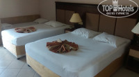 Отдыхали в этом отеле с 20.07.2017г. по 29.07.2017г. семьей с двумя детьми 11 лет и 16 лет. Сразу напишу, что первый раз в Турции и сравнивать не с чем. Приехали в отель около 17.00, должны были прилететь с утра, но рейс задержали, и это вина авиакомпании. Заселили сразу же в бунгало на 2 этаже, примерно посередине территории отеля. ПО НОМЕРУ : номер попался нормальный, двухспальная кровать, односпальная кровать и небольшой диванчик (11-летний ребенок вполне помещался) все работало, фен, кондиционер находился прямо над односпальной кроватью (про это писали), и дул прямо на нее, но поправив лопасть направления потока ... в ручную) все встало на свои места, на кровать уже не попадало))) вида с балкончика на море не было, было на соседнее бунгало, но для меня это не важно, в номер приходили поспать (было тихо) и принять душ. Сразу хочу написать обязательно берите бельевую веревку, у нас на балконе прежние постояльцы оставили нам одну, а так как мы привезли свою, то натянули еще две, и для семьи из четырех человек как раз хватало, чтобы высушить все вещи и полотенца, потому-что в ванной сушить негде только один крючок, и я видела что у других соседей (причем у многих по всему отелю) по балконам, на перилах, на столе, на спинках стульев "сушатся" вещи. Убирали почти каждый день, раза два отказывались, чаевые первые два дня не оставляли, но оставив один раз, разницу ощутили, номер просто благоухал, даже подстригли деревья, которые попадали своими ветками на наш балкон. Хочу заметить, что полотенца периодически попадались грязные, звонили на рецепшн, просили поменять, принесли еще грязнее, чем были,... из всего выбрали более менее. Шумоизоляция в номере хорошая, ни я ни муж , не слышали соседей вообще, хотя по соседству были маленькие дети. ПО ТЕРРИТОРИИ: не хочется повторятся, территория супер, все как и пишут, были в соседней пятерке, мне показалось, что у них территория гораздо меньше.В нашем отеле я насчитала 6 бассейнов (1-ый на первом этаже где рецепшн, там же сауна, можно бесплатно ходить сколько хочешь, 2-ой основной большой, рядом 3-ий для малышей под навесом, 4-ый детский с горкой, и 5-ый возле корпуса жасмин и конечно же с тремя горками. ПЛЯЖ: галечный, заходить не комфортно, но я люблю массаж ступней)), маленьких детей носили на ручках. Лежаков хватало, мы приходили с утра и в 9.00 и в 10.00 и всегда находили себе место, пусть даже и без матрасиков. У бассейна не лежали, мы же приехали на море, в бассейне и дома поплаваем))). Я сама курящий человек, представляю ощущения человека который не курит, но меня поразило, то , что наш народ ни чего не останавливает, даже курить собственному ребенку в лицо, но только бы не тащить свою задницу куда нибудь отойти, курят везде возле бассейна, на пляже, и т.д....ВЕЗДЕ!!! Обязательно!!!! Нужно хотя бы на пляже определить места для курения, тогда и бычков в песке будет меньше. По пляжу ходят и предлагают свои услуги то спа, то экскурсии, то поездку за шубой, то за кожей, то недвижимость прикупить. Пока лежишь, обязательно подойдут человек 5, причем и утром и вечером ...и так каждый день, и каждому нужно уделить минут 5, это напрягало!!!!!!!!!!! ПОГОДА: весь отдых стояла жаркая погода, доходило до +52, с 11.00 до 15.00 не рекомендуют загорать, у меня кожа не склонная к загару брали крем 30, еле еле справлялся, один день были большие волны, в море почти ни кто не купался, бассейн был битко