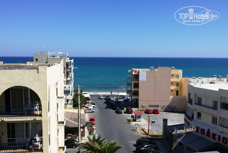 Расположение отеля крайне удачное: 3 минуты (на север) – и ты на море и на набережной с кучей магазинов и кафе (центр города – налево минут 20 ходьбы). Через другую дорогу, на восток – супермаркет Халкиадакис со всем необходимым, а также таверна с звучным национальным живым звуком (который прекращался строго к 23-00). Супермаркет не работает в воскресенье, а вечером закрывается строго в 21-00. Возле супермаркета банкомат. Также с этой стороны киоск продажи билетиков на экскурсии на красном паровозике (по Ретимно, окрестным деревушкам, в монастырь Аркади, Элефтерну). С другой стороны отеля (на запад) – мини-гольф (билет 6 евро для взрослого, 18 дорожек) и остановка «Yellow Train» (экскурсионный паровозик, однодневные экскурсии в деревни, монастыри, окрестности Ретимно).