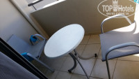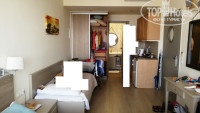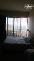 При заселении нам дали номер 1003 (5й этаж) в корпусе Ikarus (номер studio superior, 25 кв.м.). По-видимому, он строился как апарт-отель (т.к. есть ресепшн, холл с телевизором, но нет помещения ресторана, все номера в этом корпусе с кухонным уголком), затем его присоединили к Lefkoniko мостиком, через который нужно ходить в ресторан. В том числе, и чемоданы приходится тащить через этот мостик… Лифт есть, довольно оригинальный ? Номер с приличным ремонтом, на полу ламинат, в ванной все чисто. Матрас на кровати и подушки хорошие, не продавленные. Кровать основная – это две односпальные сдвинутые, третья (для ребенка) – типа тахты, 90х120. Кухонный уголок включал в себя: шкафы с посудой на троих (сковорода, 2 разноразмерных кастрюли, 3 чашки с блюдцами, 3 мелких тарелки, 3 глубоких, миска для салата, 3 ложки, 3 вилки, 3 столовых ножа, турка для кофе, стакан, 2 бокальчика), ножа для резки нет; полноценный компактный холодильник с морозилкой (все работает, тихо); 2-конфорочная плита (лайф-хак для будущих постояльцев: делений нет, максимальное деление - на "час" :)); мойка с краном (вода лилась струйкой - кран требует ремонта); была вытяжка, но у нас не включалась. В ванной: широкая раковина со шкафчиком и донным клапаном, сток для воды в полу, душевое отделение отделено бортиком, правда, шторка повешена высоковато, поэтому вода вытекает на пол, нужно быть аккуратнее… Фен обычный, проводной. Уборка производилась регулярно, кроме воскресенья – полотенца менялись, белье один раз точно менялось, пол протирали, мусор выносили. В шкафу штук 6 вешалок, полки, на верхней полке одеяла и запасные подушки, сейф (чтобы его открыть и пользоваться - ключик стоит 2 евро в сутки, оплата на ресепшене), на нижней полке помещается чемодан или два. Балкон с видом на море и улицу, на балконе 2 стула и столик – очень приятно сидеть вечером и дышать воздухом. Веревки для белья на балконе нет, можно купить в супермаркете. Двери – раздвижные, панорамное остекление; левая дверь «заедала», поэтому пользовались правой. Кондиционер работает, но мы не включали, на ночь оставляли приоткрытой дверь на балкон. Шумновато, слышны мотоциклы и автобусы, но если хочешь спать, этого не замечаешь. Телевизор ЖК, работает, русские каналы начинаются с 9000-го. Немного мешало то, что во входной двери матовое окошко в виде иллюминатора, через которое светил свет из коридора, как в больнице - мы заклеили его бумагой и скотчем. Интернет в нашем номере просто «летал»: в коридоре возле лифта WiFi роутер. Из номера слышен шум моря…