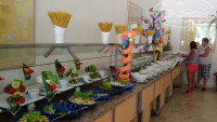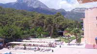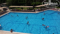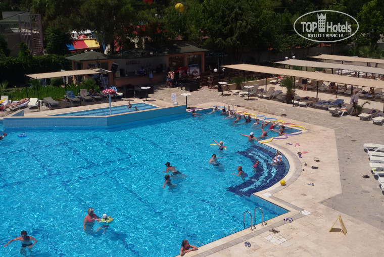 Вернулись из Турции позавчера, так что впечатления еще свежие. скажу сразу, отель очень понравился. Прочитала тут старые отзывы и фото старые посмотрела, на сегодняшний день все совершенно по другому. В номер заселили за 10 долларов, при чем нам дали выбрать из нескольких номеров, по нашему желанию, мы выбрали номер напротив большого бассейна, так кто наш балкон очень часто виден на фотках отеля)) Номер большой и чистый, грибок тщательно закрашен)) так что все аккуратно, но у нас не было держателя для туалетной бумаги, в номере был всего лишь один стеклянный стакан, который мы использовали для зубных щеток, потому что положить все принадлежности некуда, во всяком случае на умывальнике. Но мы не парились)) Кровати сдвинули, как мы хотели, кондиционер работал исправно все 10 дней нашего пребывания, уборку предлагали каждый день, в реальности убрали пару раз, полотенца меняли каждый раз когда мы просили. Очень слабенькие пакеты одноразовые для мусора, мы мусор весь относили в пакет большой, днем, на тележку уборщицы. Все соседи складывали мусор просто в коридоре и на подоконники - особенно много было грязной посуды с остатками пищи- но это видно в культуре россиян так принято))) Кормили как на убой, все очень вкусно и разнообразно, особенно мне понравилась зелень. которую подавали и на завтрак и на обед и на ужин, очень много запеченных овощей, разнообразные салаты, горячие блюда вкусные, за 10 дней несколько раз давали запеченую на гриле форель - очень вкусная)) были какие то нарекания на некоторые блюда- иногда картошка была странная , как ватяная, или не допеченая, но это были просто мелкие недоразумения, выбор, что взять, всегда был. На завтраки всегда брали их кефир или не знаю, как это правильно называть- довольно густая, типа простокваша, для детей молоко с колечками или шариками, очень вкусные булочки, особенно булки с кунжутом)) десерты вкусные. правда, чаще всего одно и то же. но мне нравилось)) Кофе из аппарата тоже хороший, горячий шоколад вкусный, капучино, выбор был) В общем, кормят вкусно, правда. я ни разу не была на полднике, вполне хватало обеда)) Анимацией я не интересуюсь. так что видела, что парни девчонок развлекают, но в подробности не вдавалась. На детскую анимацию ходили пару раз, очень не понравился уровень громкости музыки, некоторые дети аж кривились, мне самой было не комфортно, как по мне, очень громко и нельзя детей так близко ставить к колонкам, но раз мамочки были не против)))) мы с ребенком просто больше не ходили на детскую анимацию. В отеле три бассейна, но судя по отзывам, большинство гостей никак посчитать не может, сколько бассейнов всего - один детский, примерно на 50 см, второй с горкой,примерно на 1,40 м, и еще один, самый большой, взрослый , примерно на 1,50 -1,60 м - указатели глубины были безжалостно содраны отдыхающими, так что глубину даю на глаз)) Вода чистая, для меня не привычно, что в бассейне можно купаться круглосуточно, обычно после 18,00 купаться нельзя, потому что чистят бассейн, но тут видно другая система очистки. Песок есть на дне и есть какие то грязные пятна на плитке, но вода чистая, никаких запахов и никаких болячек не было)) Персонал приветливый,на вопросы отвечают, помогают. Вай фай наладили уже при нас, но все равно. при том количестве народа, который им пользуется, на всех его все равно не хватает - по утрам. когда лю