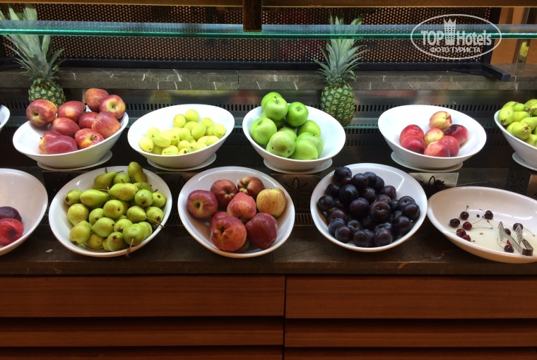 Десерт: 26 видов сухофруктов, орехов и локума; 60 видов дессертов (включая отдельный буфет турецких сладостей и пахлавы); 20 видов фруктов (все фрукты сезона, сервированные целиком и очищенные, и в виде фруктовых салатов); 12 видов мороженого. Отдельно детский буфет, диетический буфет.