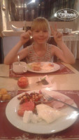 Питание: разнообразное. каждое утро фруктовые салатики,выпечка,ветчина,колбаса хорошего качества. омлеты, яичница, овощи, прекрасный кофе, разнообразный чай, из фруктов сливы. груши,персики.нектарины; однажды были пельмени, спагетти давали, несколько видов сыра.Всё очень понравилось!Всегда вовремя убирали посуду со стола. доброжелательно встречали. в ресторане чистота и порядок!