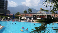 Отдыхали с мужем и дочкой 12 лет. По отзывам были готовы, что это не 5*, поэтому настроились заранее. Приехали в отель в 11ч, оставили чемоданы, переоделись и осмотрели территорию. Затем пообедали в снек-баре, а в 13:30 нас заселили в дополнительный корпус, на 5 этаж, в светлый просторный номер с видом на шикарные сосны. В номере всё исправно работало, было чисто, особенно порадовали белоснежное белье и полотенца, идеально чистая сантехника, упакованные тапочки. В минибаре 2 бутылки воды при заезде, в ванной мыло и гель для душа, шапочка для душа, ватные диски и палочки, мощный, хорошо работающий фен. За все 12 дней отдыха ничего не ломалось, уборка проводилась тогда, когда повесишь табличку "уберитесь", в достатке менялись полотенца ( грязые мы, как везде принято, просто складывали на пол), белье всегда свежее и белоснежное, пару паз оставляли воду и апельсины. Питание - разнообразное, всегда были сыты, арбузы, дыни в изобилии. Алкоголь - в основном пили вино, белое, красное и розовое и пиво, местная водка, со слов мужа, "гадость" ( на вторую неделю пить ее он уже не мог). С 15 до 17 ч. раздают вкуснейшее мороженное, правда, надо постоять в очереди, также пекут вкусные лепешки с сыром и фаршем у снек-бара. Вода в неограниченном количестве в холодильниках снек-бара и ресторана. Анимация для взрослых средняя, про детскую ничего сказать не могу, т. к. наша 12-летняя дочь уже не посещалв её. Хочется отметить обслуживающий персонал в ресторане и барах, молоденькие девочки и мальчики изумительно доброжелательны и терпеливы, молнееносно убирают грязную посуду и заново сервируют столы, ни разу никакого хамства не замечено, трудятся, как пчелки. Море просто потрясло, есть с чем сравнить, оно кристально чистое и прозрачное, даже на глубине. Пляж песчано-галечный, при заходе мелкая острая галька, поэтому лучше взять с собой коралки, что мы и сделали. Лежаков всегда хватало. На пляже маленький барчик со всеми холодными и горячими напитками и платный ларек с фруктами ( цены очень демократичные). Территория отеля не большая, но очень чистая и зеленая, практически полностью утопает в тени многочисленных деревьев. Экскурсии мы покупали в турагентстве " Elit tur" (очень клевые ребята Рафаэль и дядя Миша, отлично говорят по -русски) - выходите из отеля налево, проходите буквально 50 шагов и переходите дорогу. Кстати там бесплатный wi-fi, котррым мы пользовались на протяжении всего отдыха. Отдыхая в 3 раз в Турции, наконец-то мы побывали в Памуккале и родине Николая-Чудотворца, в древней церкви г.Демре, где преклонились перед его саркофагом ( ощущения непередаваемые). Рафаэль не только предложил нам экскурсии по ценам, в 2 раза ниже, чем у туроператора, но и камфортабельный автобус с отличными русскоговорящими гидами, очень рекомендуем! Также на территррии отеля есть магазинчик, где просто оочень низкие цены, сувениры покупайте только там, ещё и скидку делают.