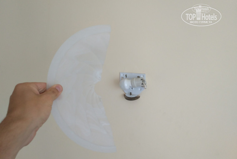 11. Над кроватью весят две голые лампы снизу прикрытые стекляшкой, причем она ничем не закреплена и один раз задев случайно рукой она упала на кровать, чуть не на голову!!!!