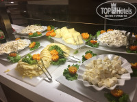 Питание: Завтраки -каши, омлеты неск видов, яичницы, вареные яйца, блинчики, гренки, огромный выбор сыров, ветчины, оливок, маслин. Йогурты, фрукты в сиропе, свежие фрукты, мюсли,хлопья, булочки-неск видов. Чай, кофе, какао, молоко, соки
